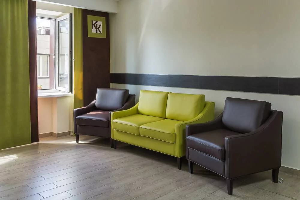 Мы проводим работы по отделке комнат, холла, стойки ресепшн.